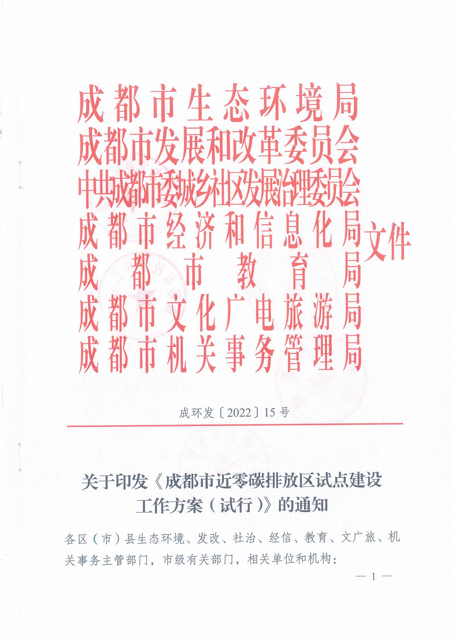 地大熱能地熱+多能互補網訊:為貫徹碳達峰碳中和目標愿景,落實積極應對氣候變化國家戰略,因地制宜探索近零碳發展模式,近日,成都市生態環境局會同市發改委、市委社治委、市經信局、市教育局、市文廣旅局、市機關事務局聯合印發《成都市近零碳排放區試點建設工作方案(試行)》,并就2022年度試點建設申報工作作出安排部署。